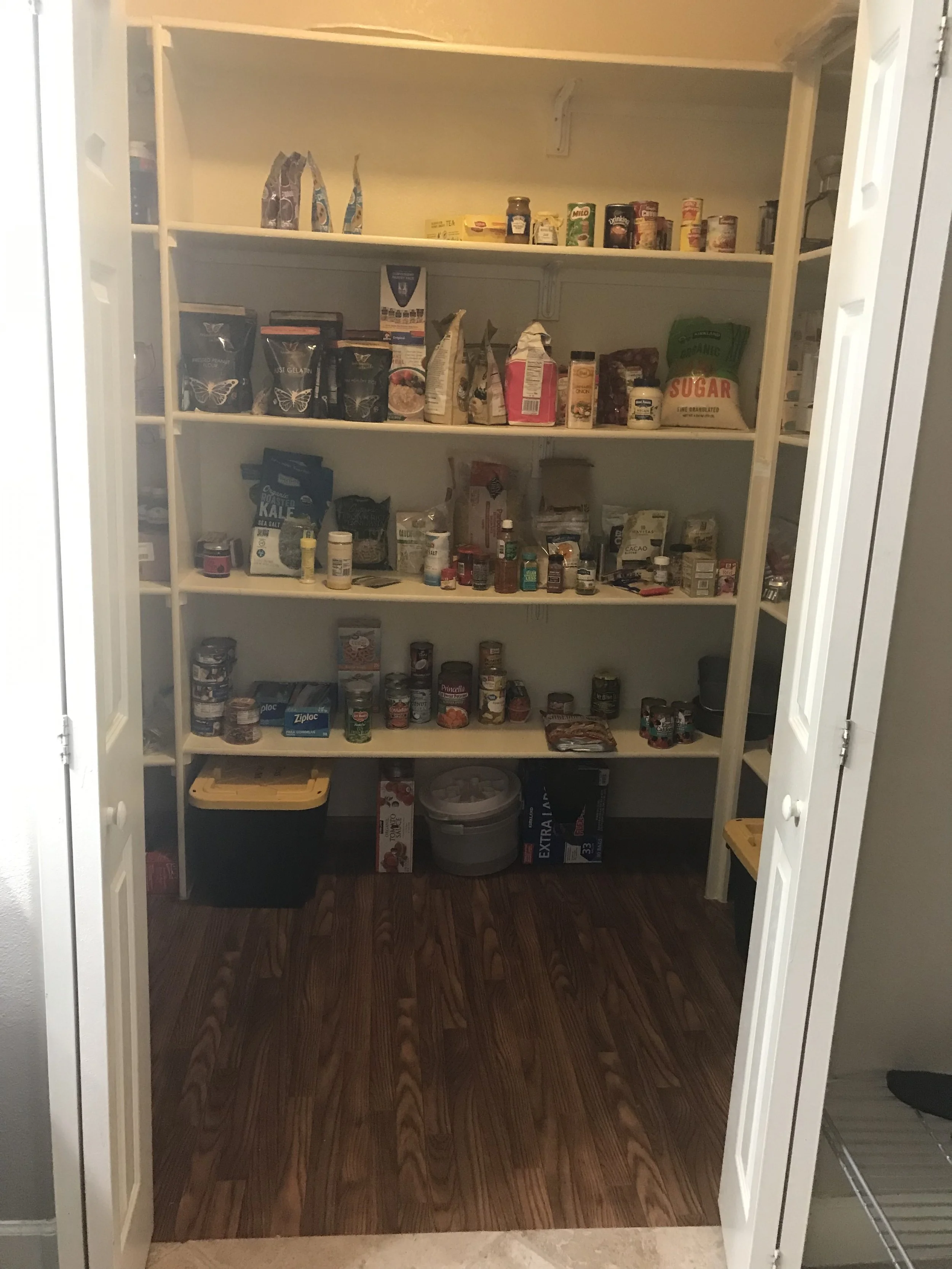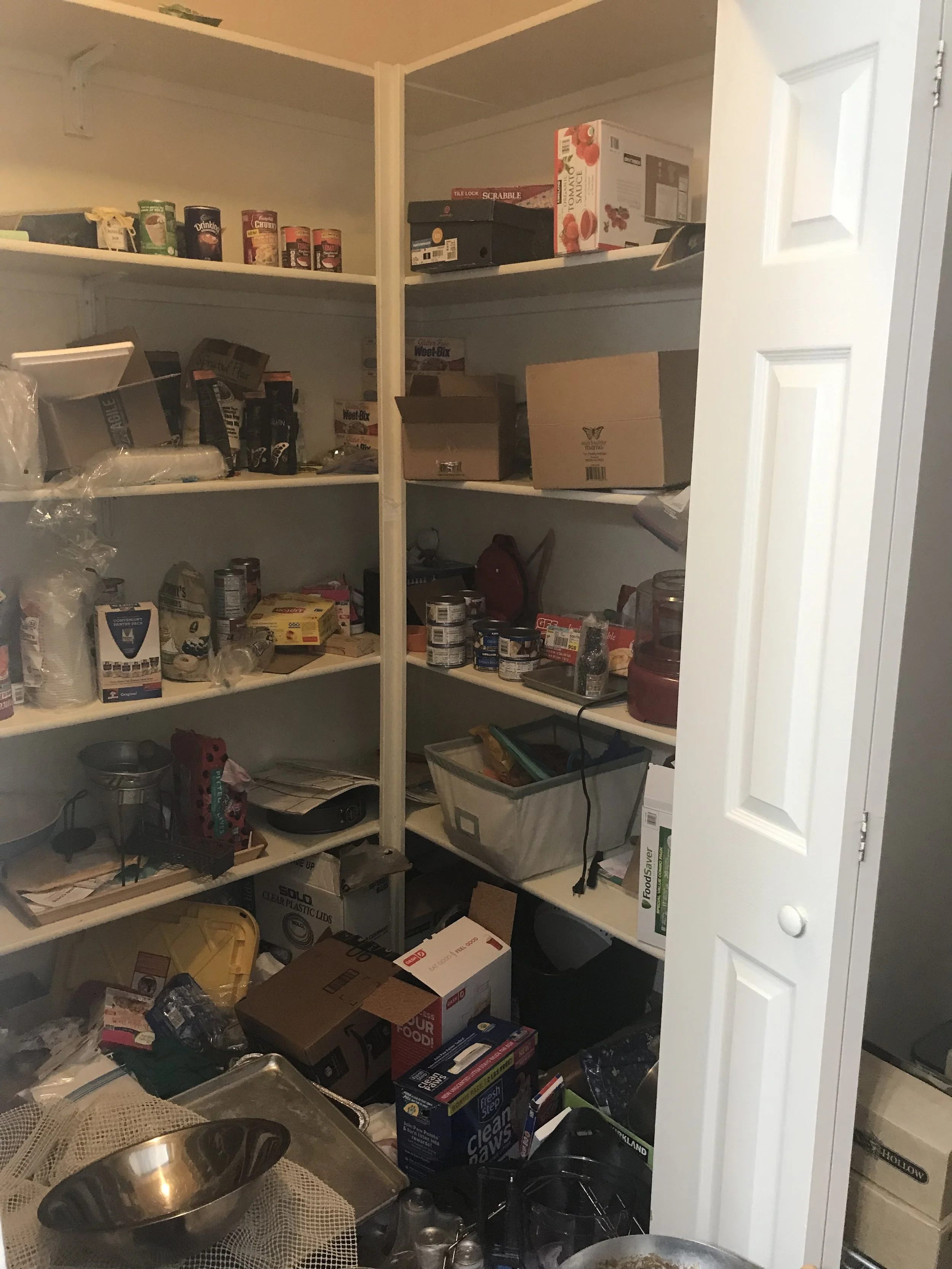 This pantry was overflowing, making it hard to see what food was available and even harder for the family to keep track of what they needed. Items had piled onto the floor, completely blocking the entrance and making the walk-in pantry unusable.